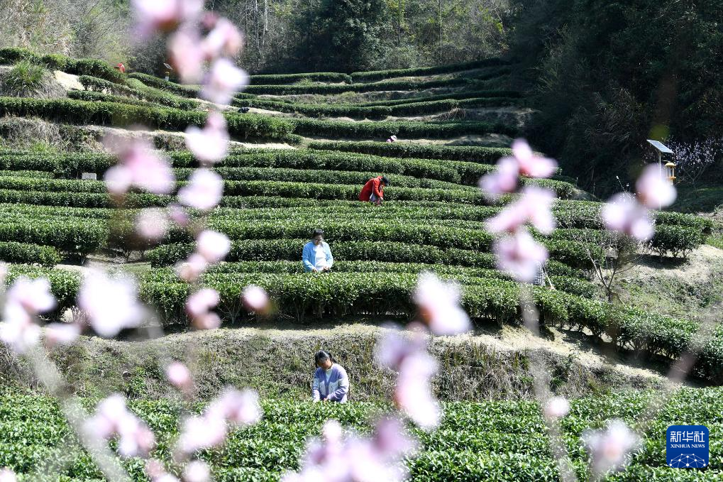 3月18日,茶農在湖北省咸寧市通城縣四莊鄉(xiāng)寺背村臥龍溝生態(tài)有機茶業(yè)專業(yè)合作社采摘茶葉。
