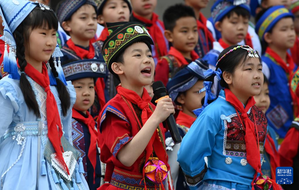3月27日,孩子們在廣西南寧市民族大道東段小學(xué)唱山歌。