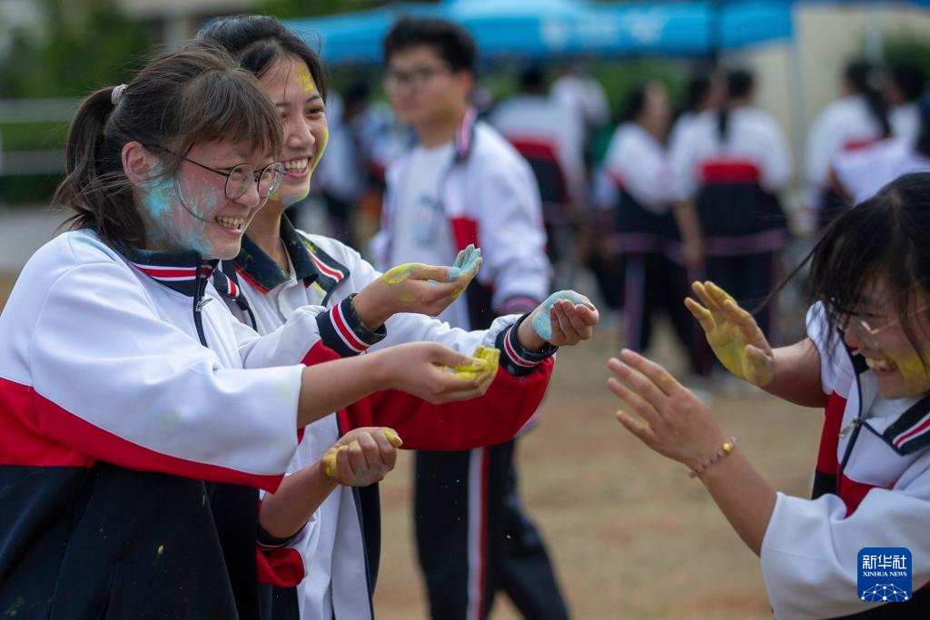 5月6日,云南省曲靖市沾益區(qū)第四中學(xué),高三年級(jí)學(xué)生參加學(xué)校組織的游園活動(dòng)。