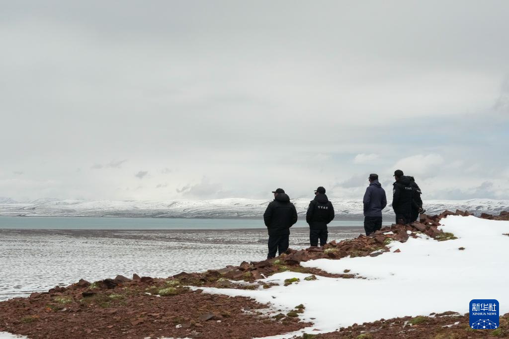 巡山隊員在可可西里卓乃湖附近巡護(7月3日攝)。