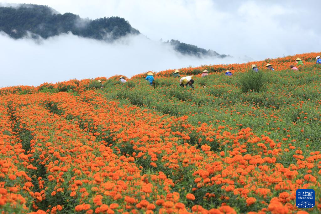 8月7日,在云南騰沖市固東鎮(zhèn),農民采收萬壽菊。
