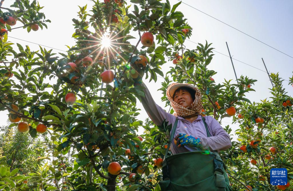 8月7日,果農在山東省東營市廣饒縣大王鎮(zhèn)的一處蘋果種植基地內采摘蘋果。
