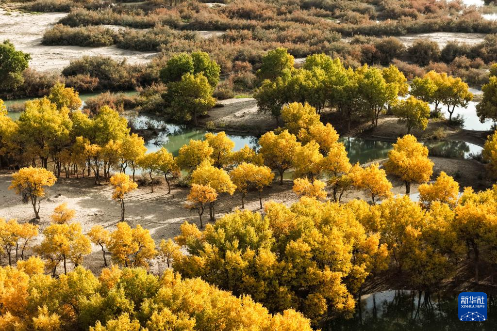 時(shí)下,新疆和田地區(qū)的胡楊迎來最佳觀賞期,成片換妝的胡楊林與水天相映,共繪金秋美景。