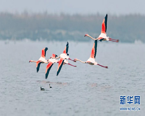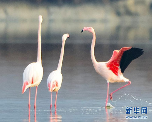 火烈鳥亮相運(yùn)城鹽湖